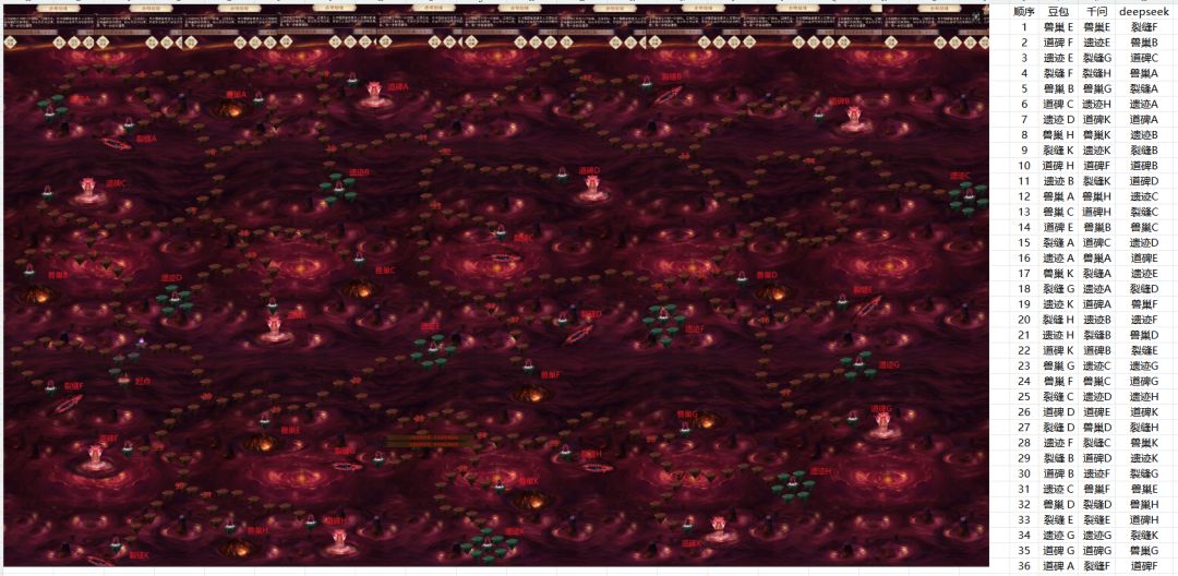因为deepseek不能识别图片,豆包对图片中识别也没有很准确,所以我在地图上标记了资源点的名字和路线交点的名字,通过文字地图的形式告知他们仨;