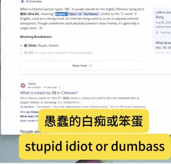 但在收到消息之后,主播就因为不懂这“SB”这两字在国内的含义陷入了懵圈当中。