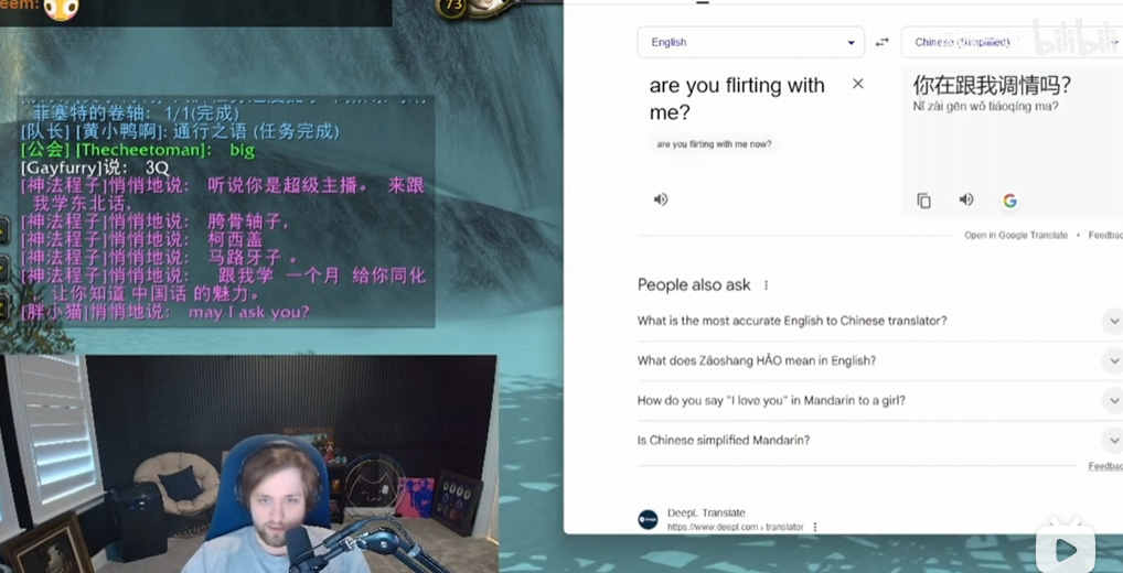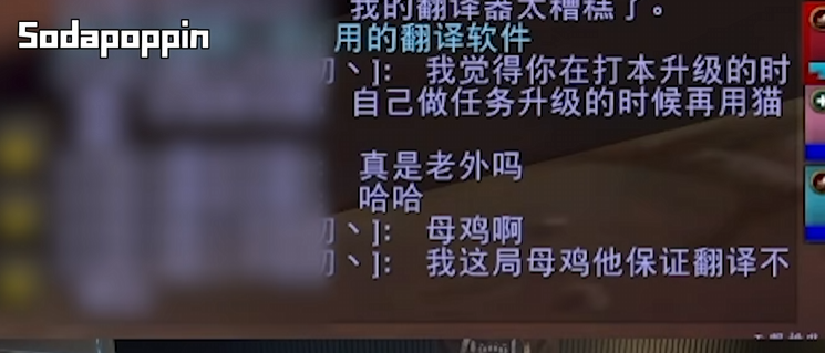 也因此,不少国外玩家都开启了中文学习模式,对着聊天框和翻译工具苦学。虽然学的好像不是什么正经中文就是了。
