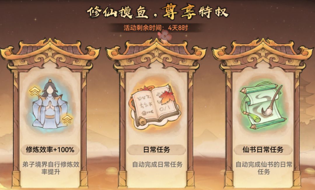 活动期间,庆典特权将再次开启,助力各位祖师摸鱼修仙~
