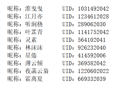 我们在因罗本相活动卡池结束前所有抽到因罗本相的艺人中,随机抽取了10名艺人,为大家送出【因罗吧唧】一份,以下为中奖艺人的游戏昵称与UID: