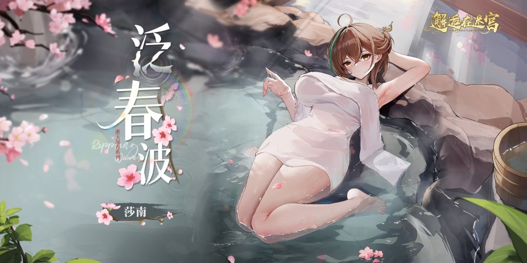 温泉旁水汽氤氲,她湿润的发丝贴着肩颈,肌肤布满了细密的水珠。可以看到她的脸上有些许红晕,或许在强装镇定。