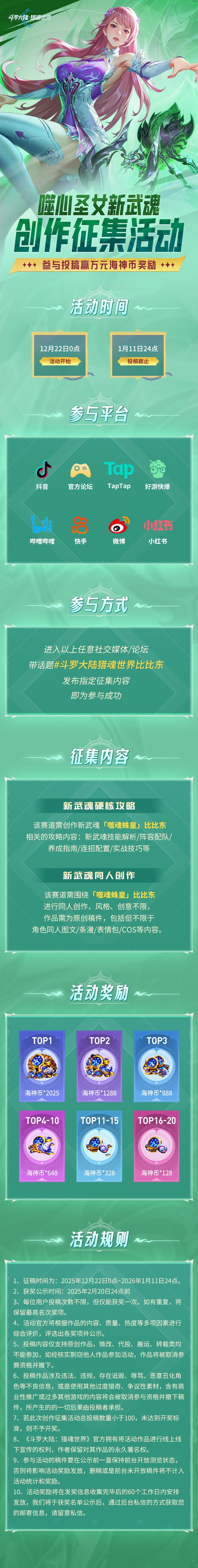 《斗罗大陆:猎魂世界》「噬心圣女」创作征集令,瓜分万元海神币