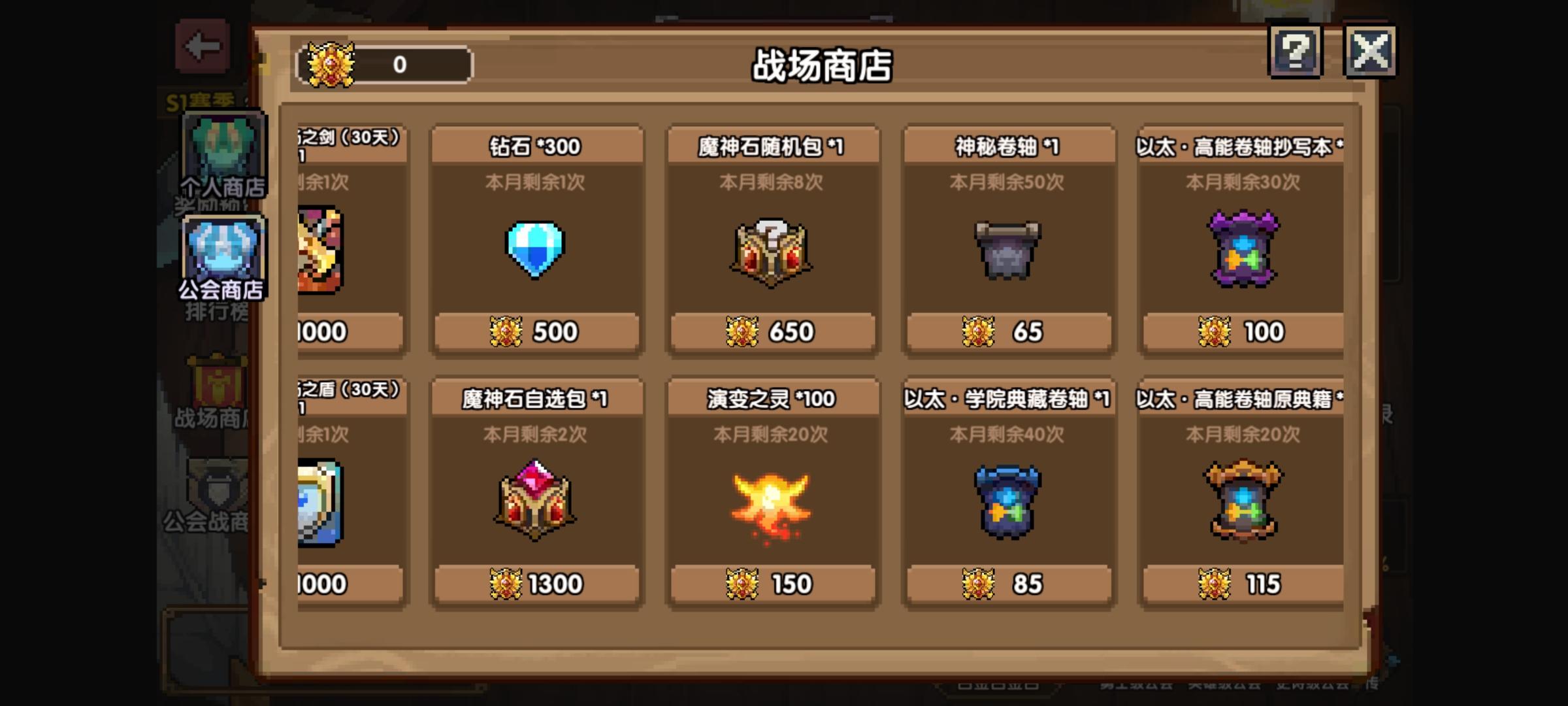 最后就是公会战商店增加了不少好东西,比如说橙色的经验卷轴,而且还有次级代币也能换到不少好东西。