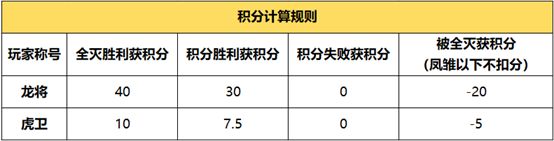 「虎卫」称号的玩家将随机匹配同为「虎卫」的对手,「龙将」称号的玩家仅与「龙将」同台竞技,巅峰战力正面交锋!