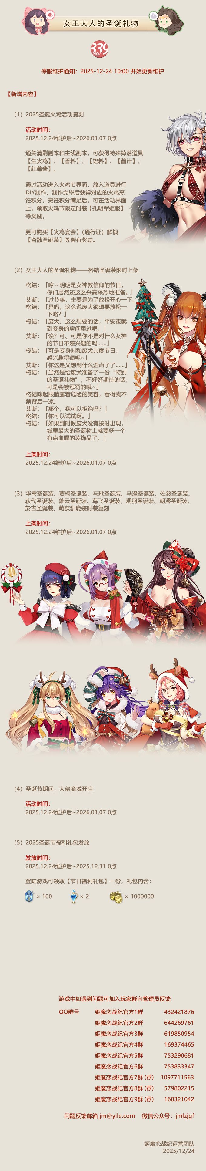 No.339 女王大人的圣诞礼物《姬魔恋战纪》12月24日更新公告
