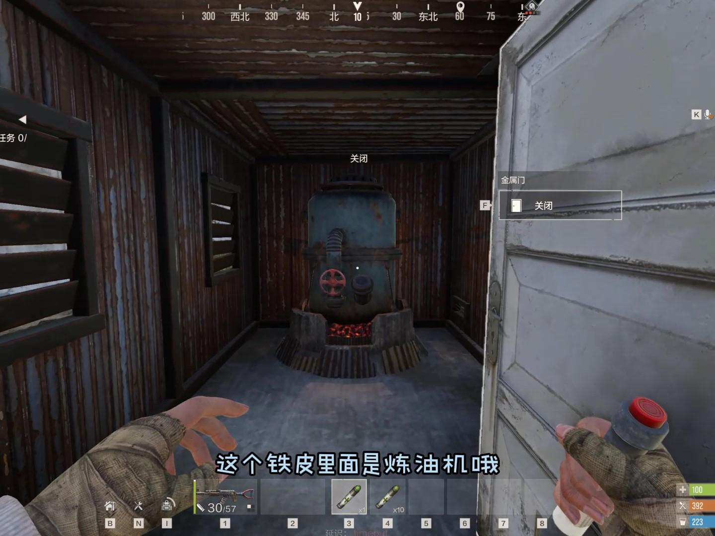 首先咱们可以把地下的油桶敲一敲,下面有个铁皮箱子里面是炼油机
