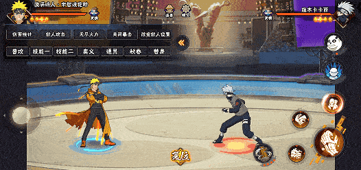 鸣人和佐助拥有各自的技能组,可以通过短按奥义键互相切换轮流作战,发挥不同角色的优势,释放连携技后也可切换到下一角色,并强化该角色的技能威力。