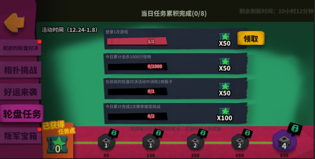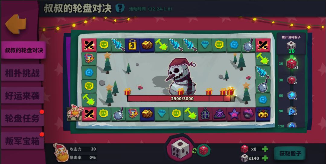 活动期间,骑士们需要投掷骰子,根据骰子掷出的点数在轮盘上行动,并根据行动结果获得对应奖励或者惩罚。