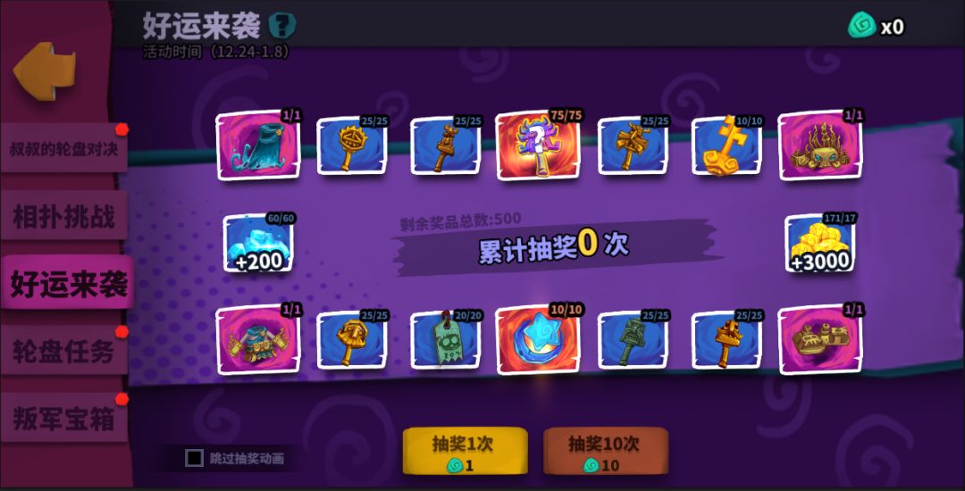 4项活动将于明天上线:叔叔的轮盘对决、相扑挑战、好运来袭以及周礼包赠礼;另外还有两款皮肤将同时返场,请骑士们届时登录游戏及时参与活动!