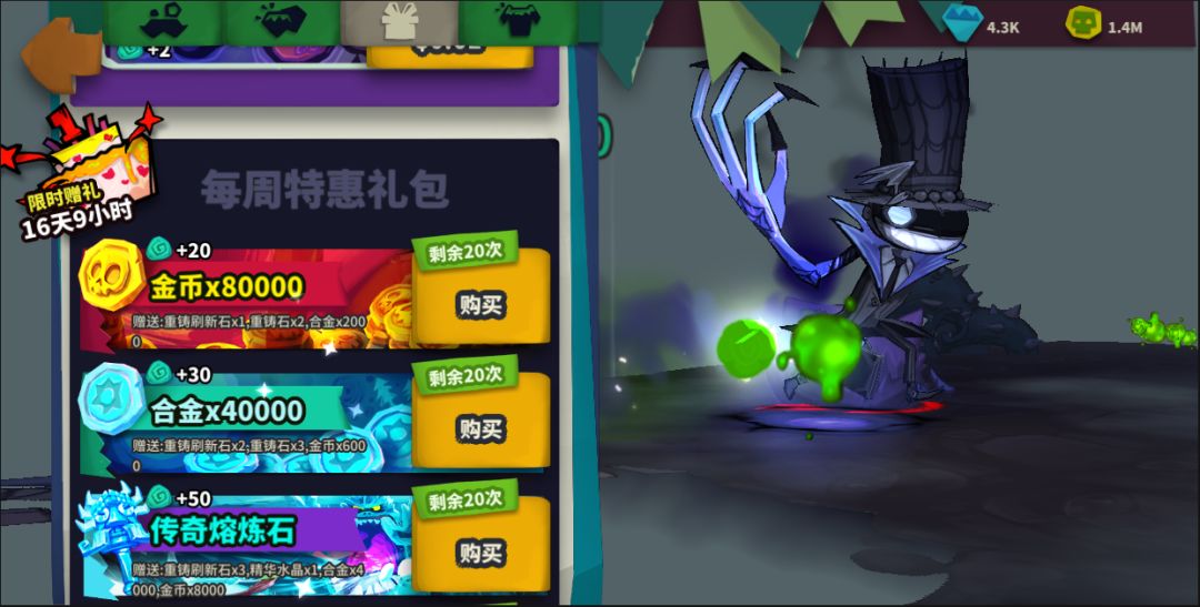 - 金币每周特惠礼包额外赠送:合金x2000,重铸石x2,重铸刷新石x1