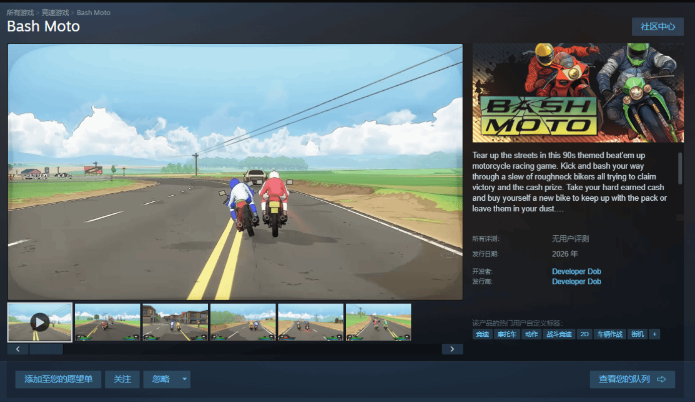 童年经典游戏《暴力摩托》相信大家都玩过,今日同款格斗摩托竞速新作《Bash Moto》正式上架Steam平台,官宣2026年发售,主打致敬经典《暴力摩托》,以90年代街头竞速为核心主题,引发老玩家情怀共鸣。