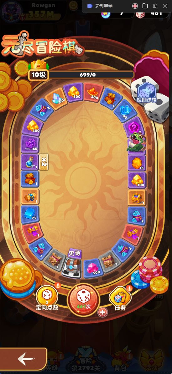 - 核心资源:冒险骰子(可通过任务、活动、挂机奖励宝箱等途径获取)