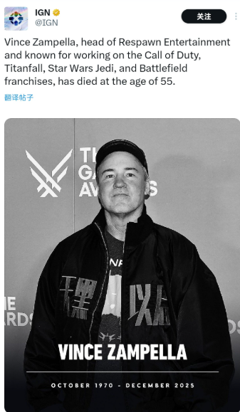 据NBC报道,知名游戏制作人Vince Zampella于本周日在洛杉矶突发车祸不幸离世,享年55岁,消息传出引发全球游戏圈震动。