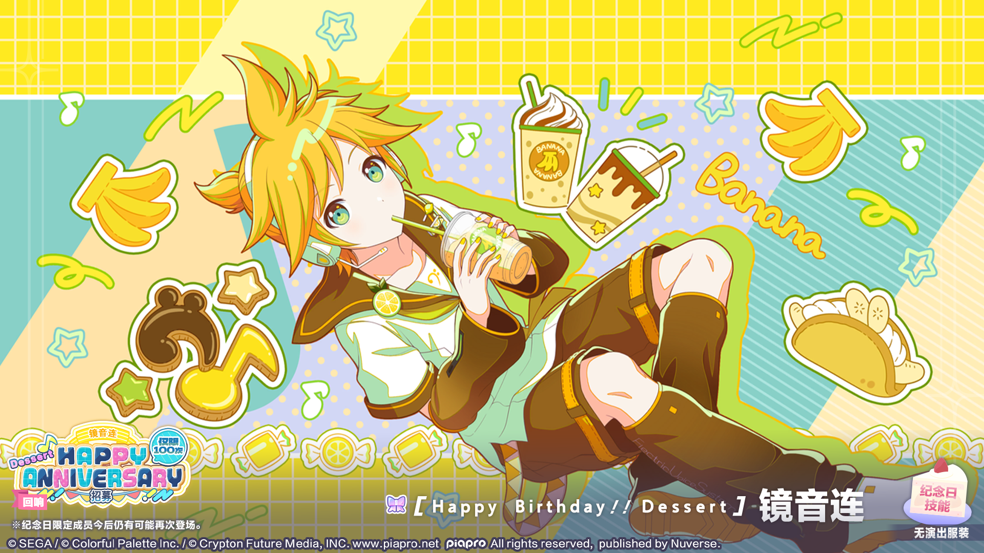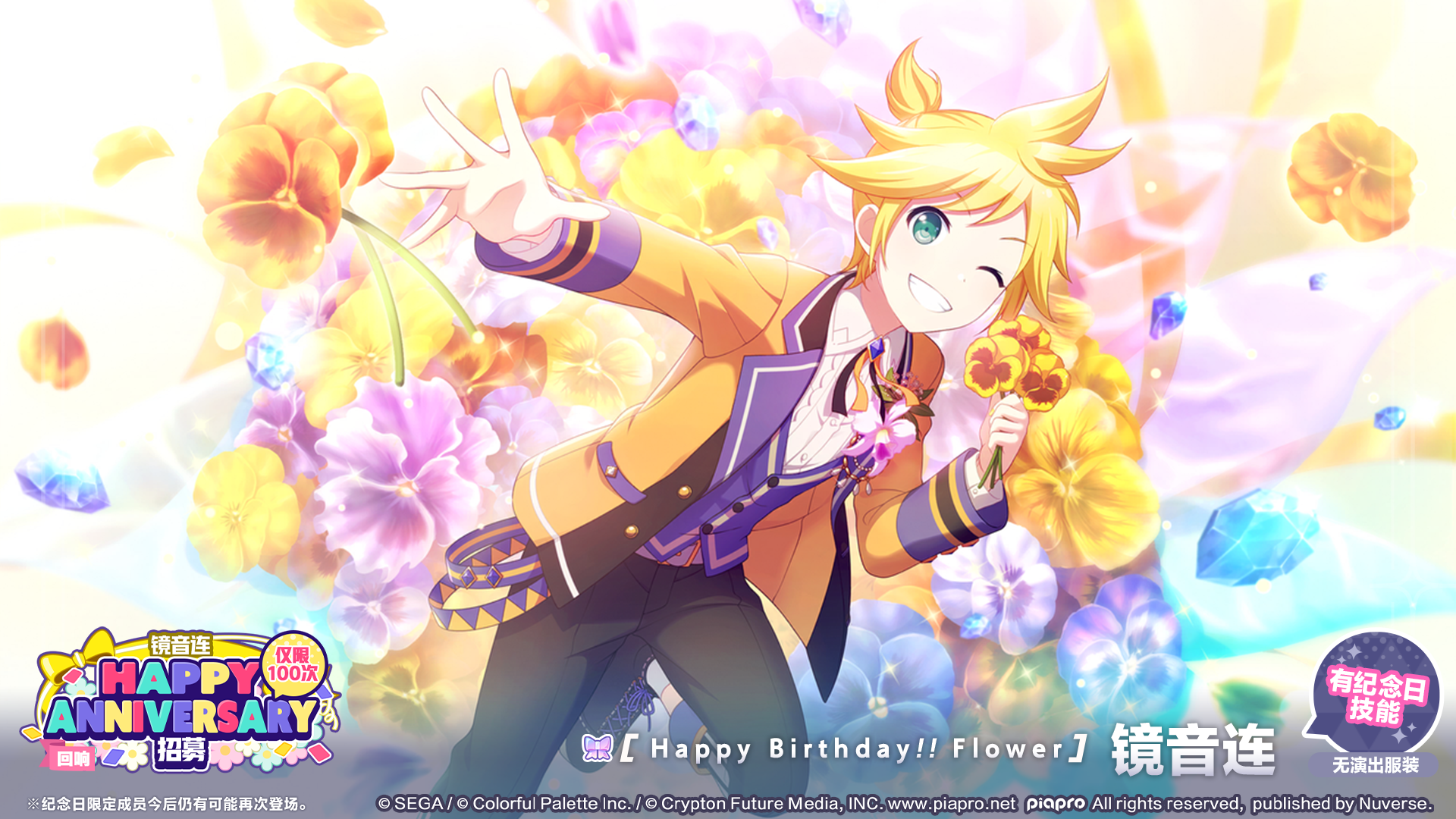 本招募中会出现稀有度[纪念日]、[★3]、[★2]的「镜音连」~🎂