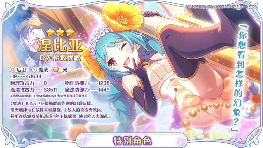 涅比亚详细的角色介绍,请于「特别角色」的「角色详细」中进行确认。