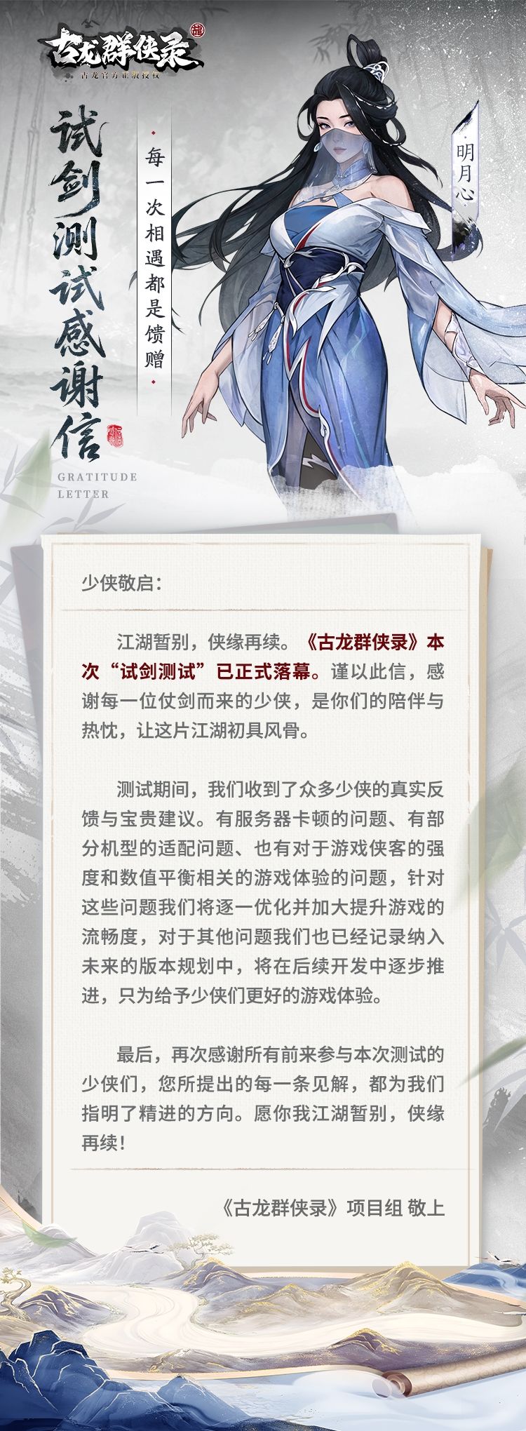 《古龙群侠录》试剑测试结束感谢信