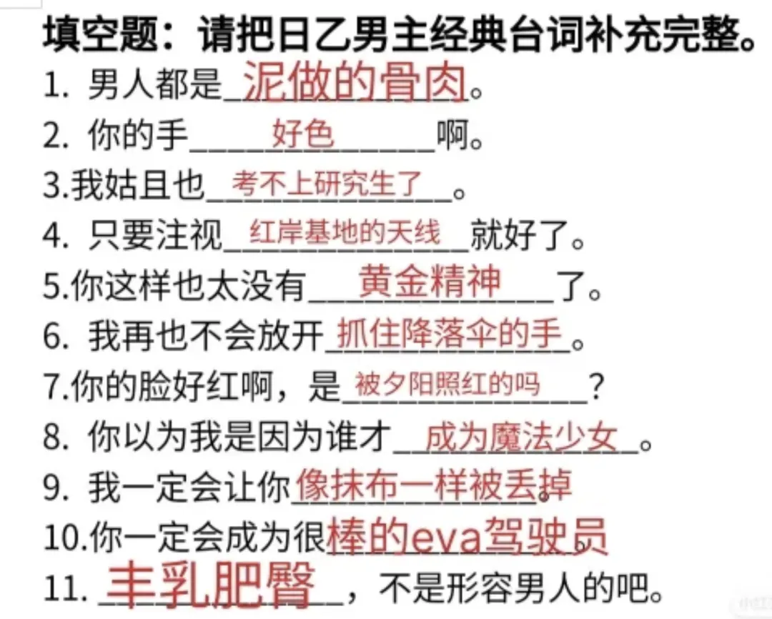 有人把它做成了填空题,以此为基础衍生出了多个版本。
