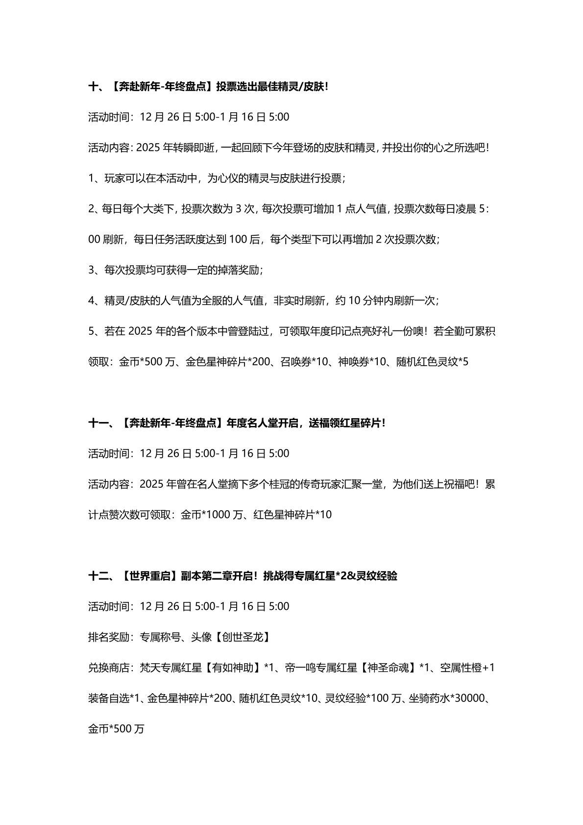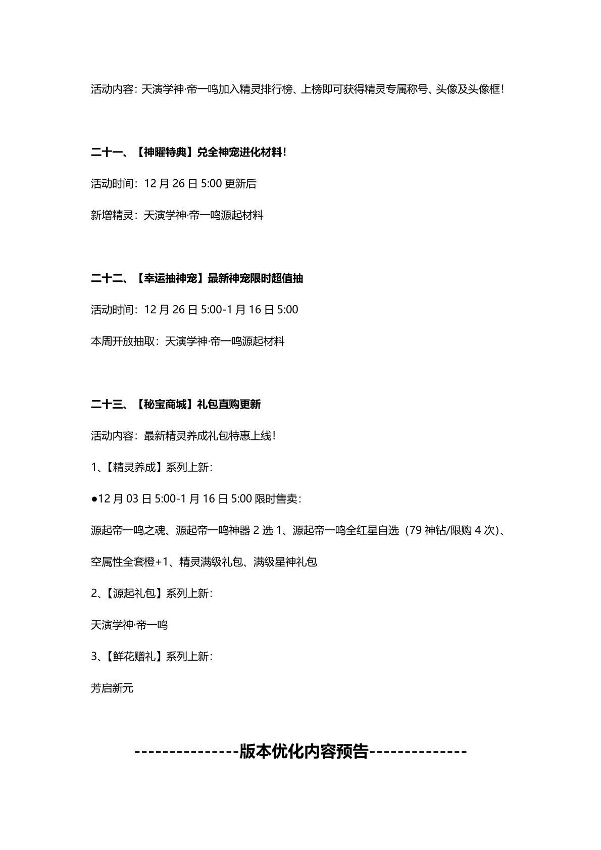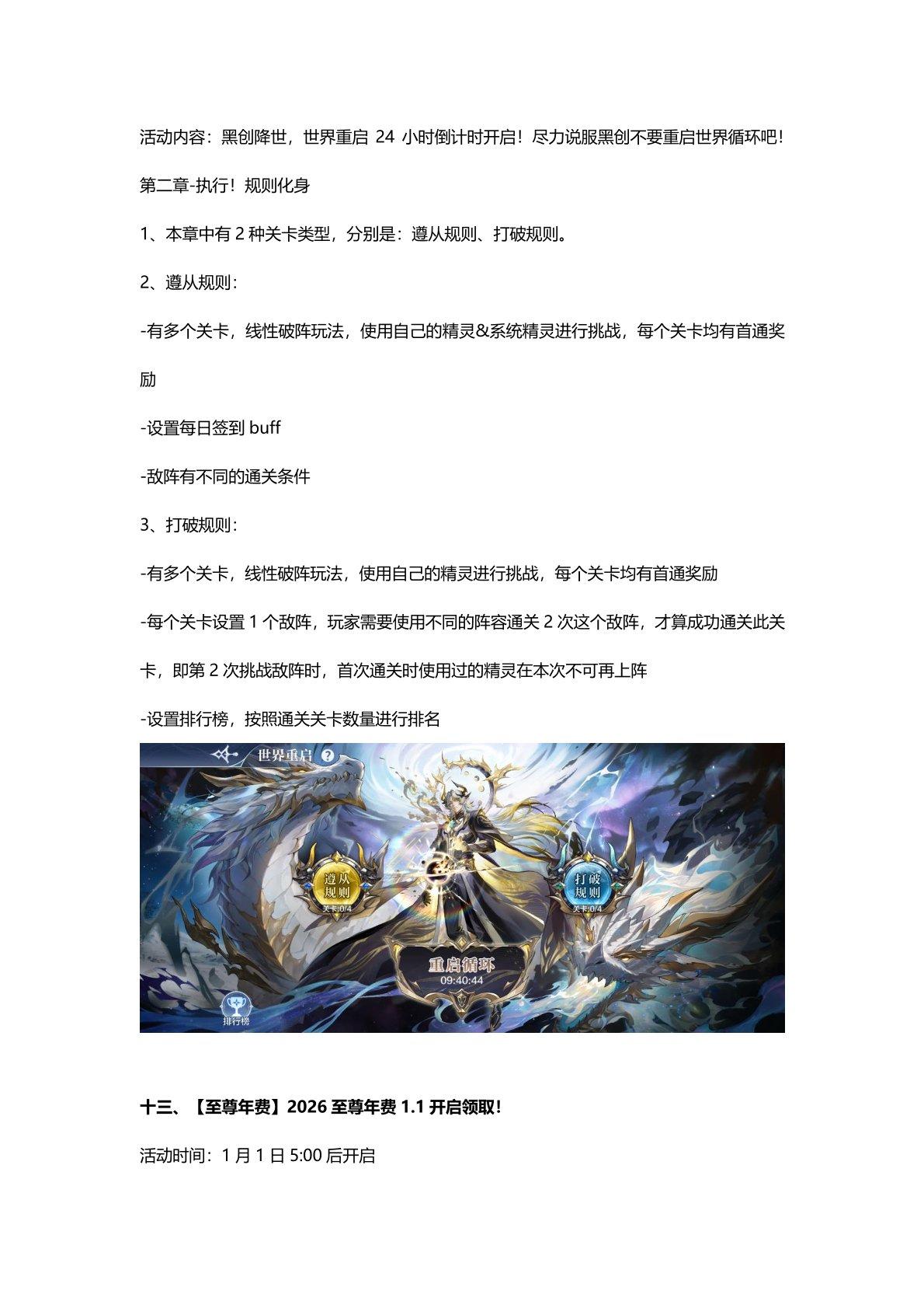 12月26日更新公告-源起帝一鸣归来,2026年费「创世圣龙」1.1登场