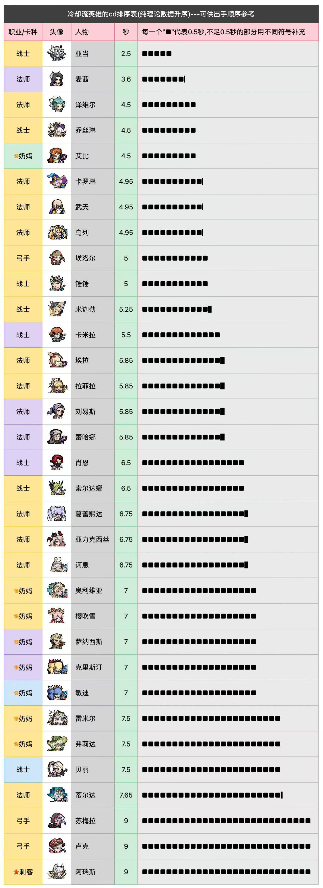 本期列下冷却流英雄的cd时间排序表(觉醒后)