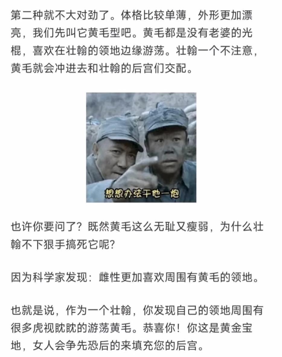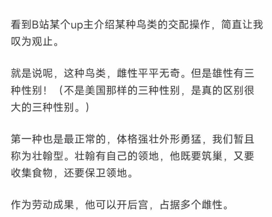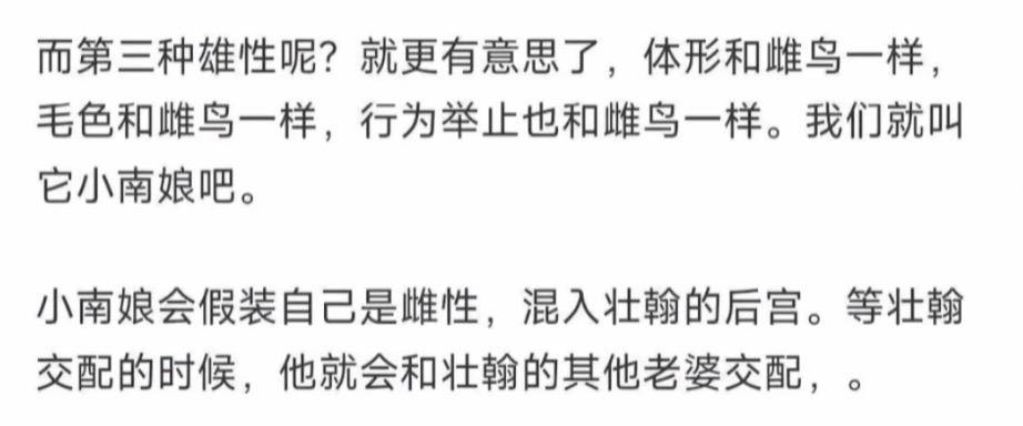· 策略:伪装成雌鸟,混入“独立型”雄鸟的领地,趁其不备与真正的雌鸟快速交配。它们是“骗子”路线。