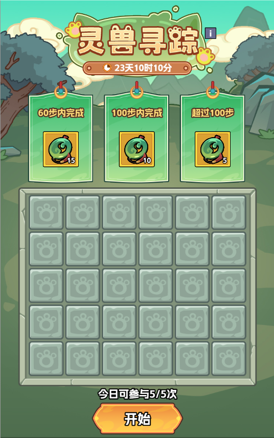 神兽牌由多种神兽组成,连续翻到两张相同的神兽牌即可消除,翻到两张不同的神兽牌后会将神兽牌再次翻回,每翻一张牌统计一次步数,成功消除所有神兽牌即可领取对应步数档位的奖励。