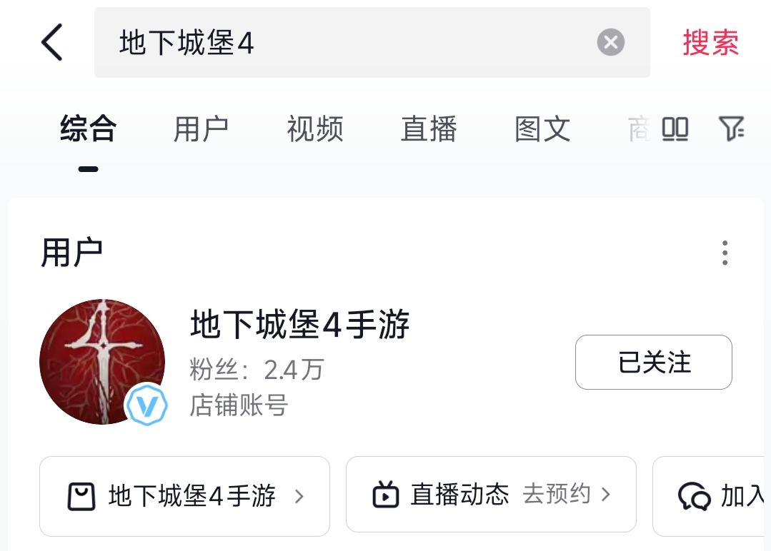 抖音搜索 “地下城堡4手游”,进入直播间即可参与互动、赢取好礼!