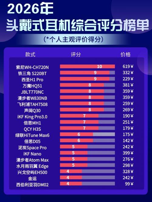 对数码发烧友和爱琢磨音乐的人来说,头戴式耳机早不只是通勤路上、宅家追剧的 “刚需品”,更是能让人一头扎进音乐细节里的 “专属入口”—— 闭上眼就能听清吉他弦的摩擦声、歌手的换气尾音,这种沉浸感没它可不行,那么性价比最高的头戴式耳机是哪款?2026 年的耳机市场更是卷得飞起,各大品牌都在较劲:你升级降噪深度,我就优化音质解析;你延长续航,我就加智能触控。但要说真正能把音质、实用性捏得恰到好处,不偏科的 “全能选手”,还得看头戴耳机性价比高排行前十。今天我跳跳就从技术参数(比如降噪深度、延迟毫秒数)、场景适配(通勤抗风噪、办公隔干扰)到用户真实口碑,一层层扒透这些耳机的好坏,帮你避开 “听着还行戴得疼”“参数好看用着糟” 的坑,精准找到能戳中你需求的 “心头好”。