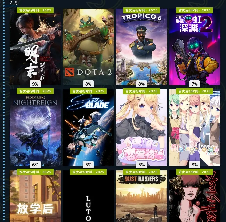 七月,国产类魂明末发售了,但发售不足十小时就已经有临近末尾剧情的节奏满天飞,一下子被扣了很多帽子,加上之前低价区涨价了又降回去以及豪华版背刺,舆论爆炸,但游戏的内容非常不错,原汁原味的魂让人沉醉。霓虹深渊2中规中矩,还算不错。放学后,以上海上世纪的小学生生活为背景,主打一手怀念。luto,心理恐怖游戏(微恐),但却寄托了哀思。