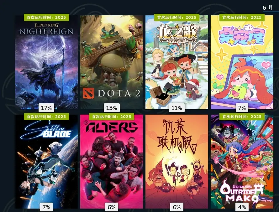 六月开始就爆发了,这月最上头的当属黑环,不知道为啥就是好玩。龙之歌,酒馆经验+冒险,也是国产,非常不错的休闲游戏。剑星,伊芙身材比游戏好玩。多重人生,11bit的大作,讲述了一个人克隆了多条时间线的自己生存探险的故事,一贯的人性思考和生存压力,非常好玩。冥界契约,类魂肉鸽,虽然好玩但ea内容不足。先驱者真子,可爱画风,玩法有些独特但稍显无聊。物之梦,解谜游戏。终末机兵,回合制机甲战斗,但内容单薄。她的日记,日记本形式展现了一个绑架案和背后的故事,内容太短。灵拳,国产支持一下吧。