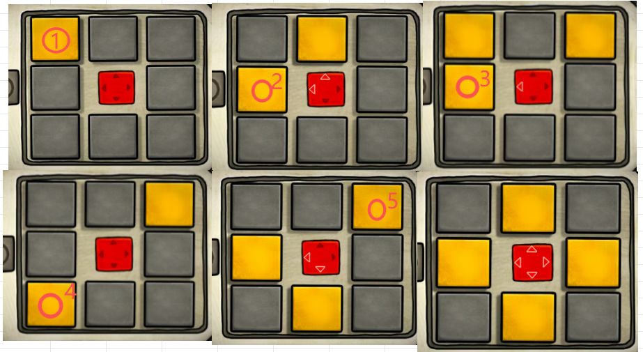 开箱这个小游戏不需要全部变成黄色,只要上下左右就可以,步骤我也标出来了,按圆圈那个块