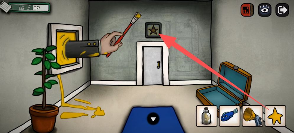 来带有星星图案的房间,把零件装上,根据路标/指向标线索,右下↘左←左上↖右→,获得1个星星道具
