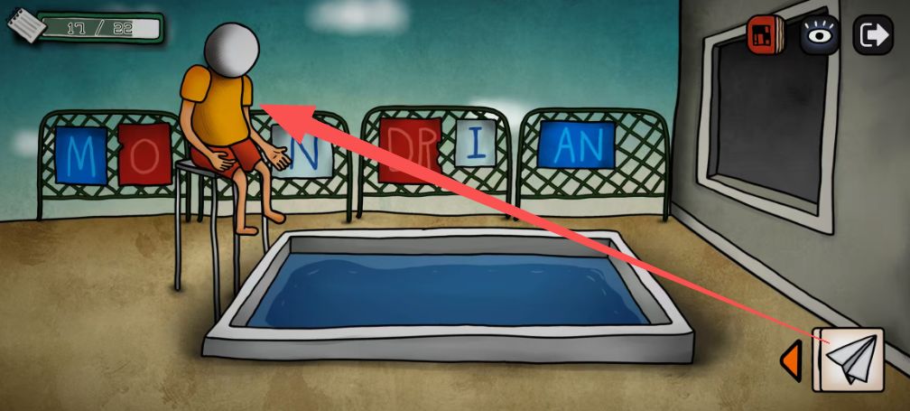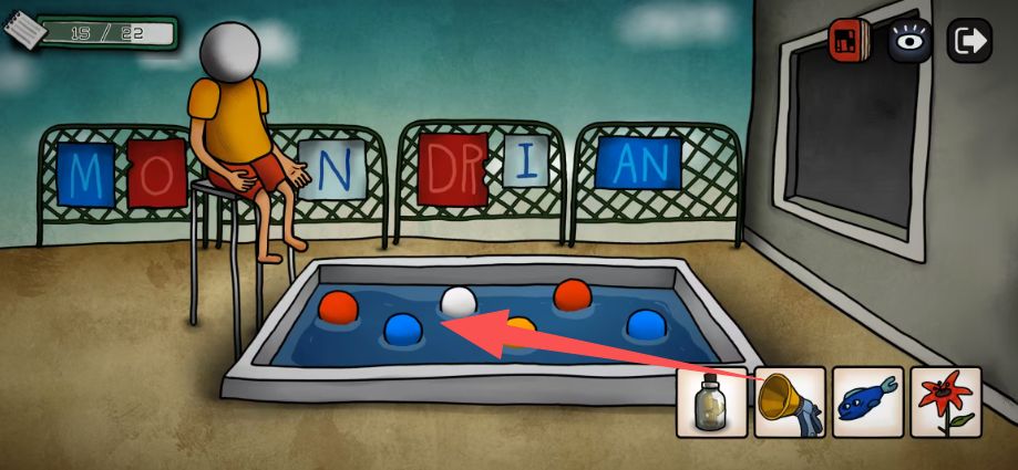 在画笔的这个房间开箱子,获得1个零件和1个清理泳池的道具