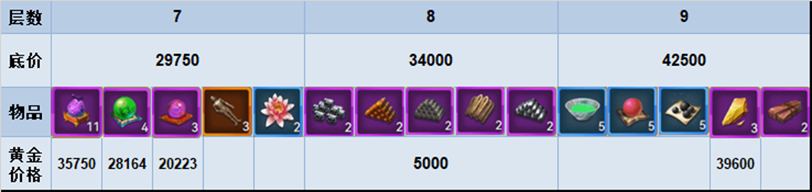 竞拍档位所需黄金(估)