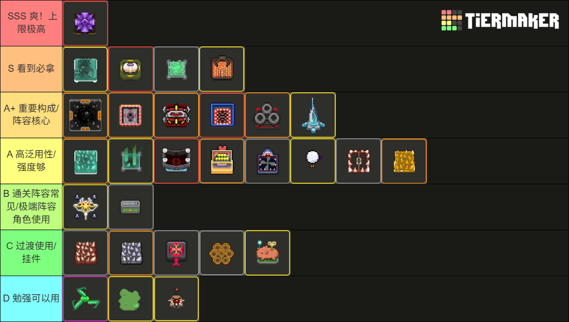 S:成形爽度高,强度高,泛用性高,拿到的话,通关率高