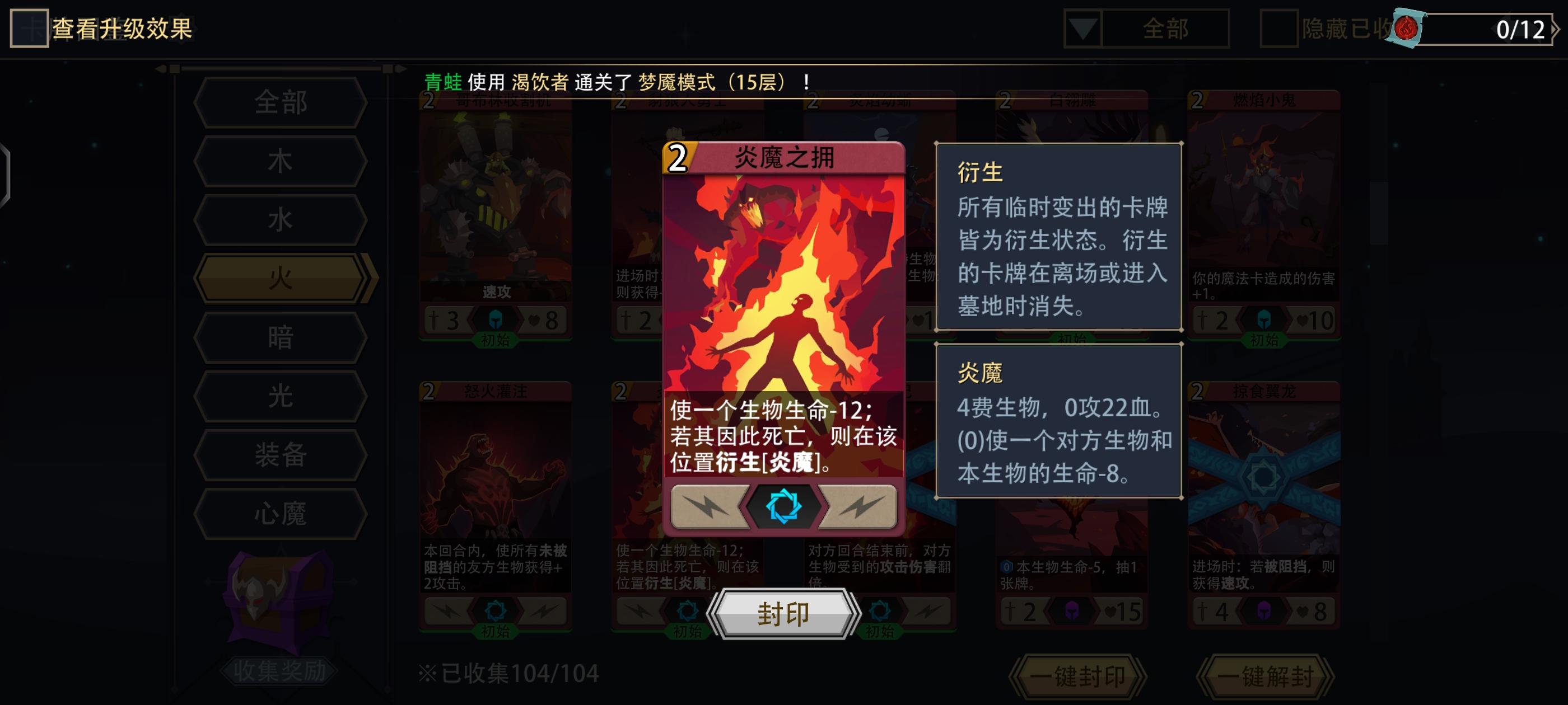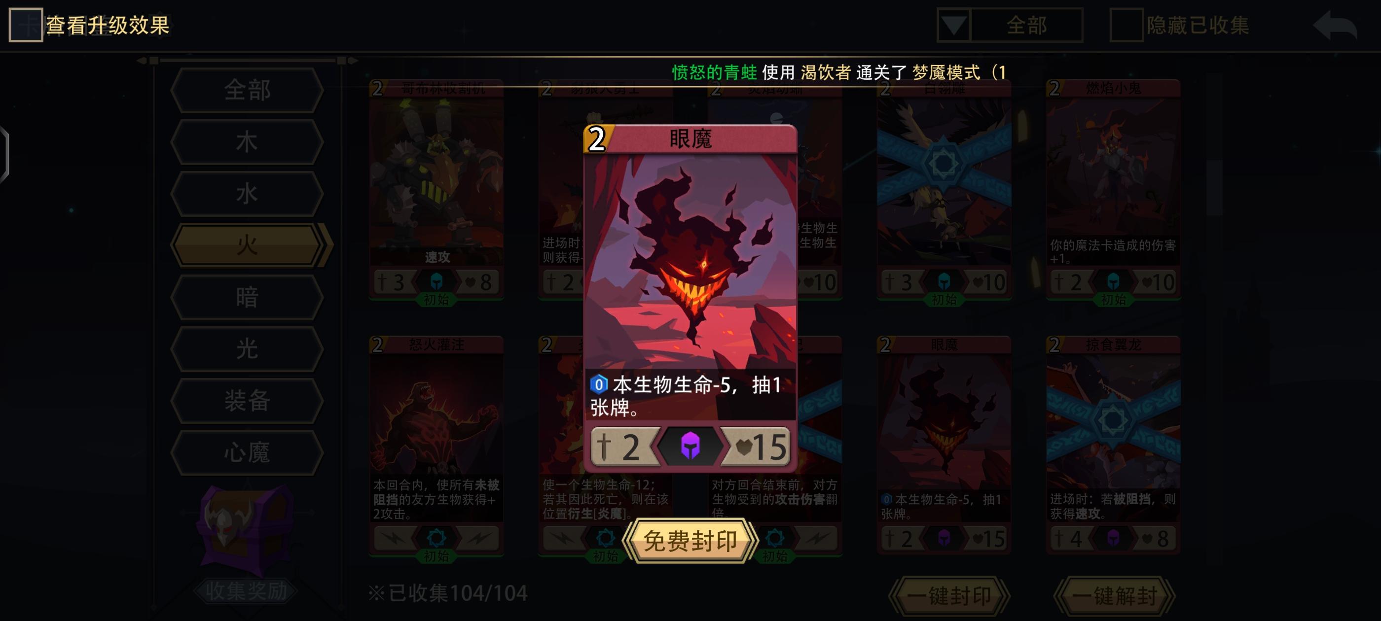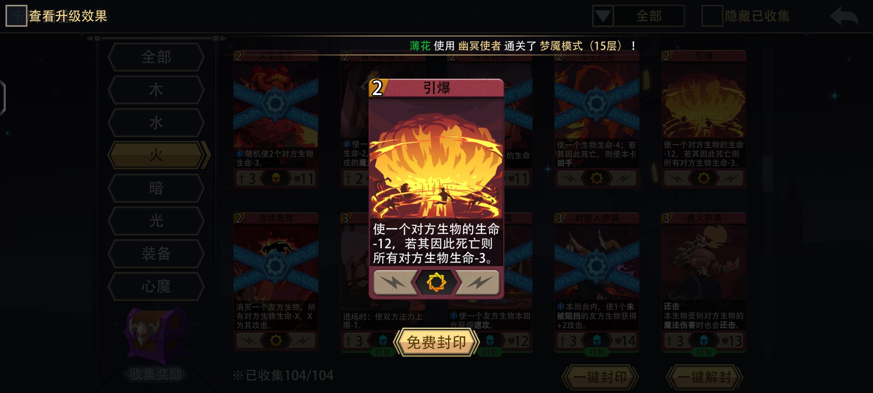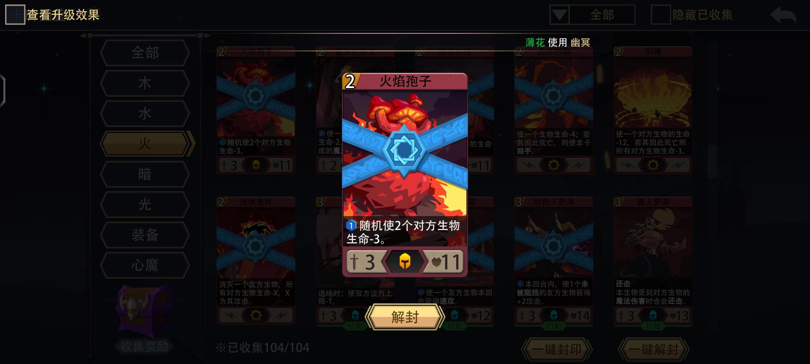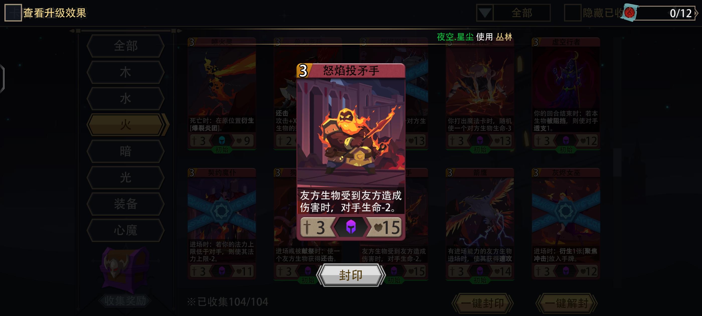 打法思路:这角色初始卡组特别拉胯 幸好技能比较实用不至于太难打 打法也是火系通用的自伤怪&英雄技能清场 然后依赖直伤怪&装备打输出