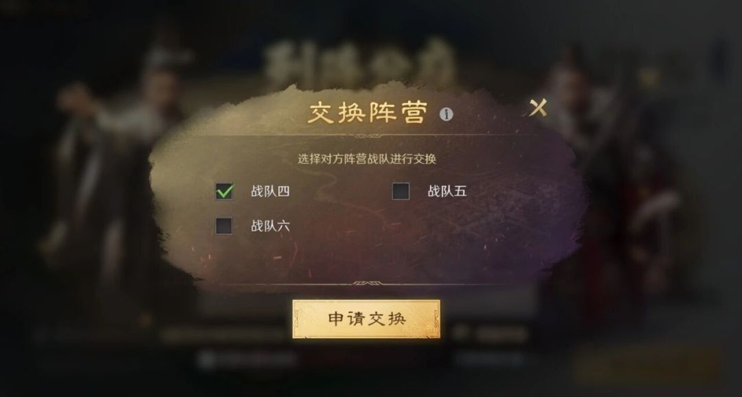 ● “ 人数≥150人” 的战队队长,可选择与别的“人数≥150人”(且战队人数接近)的战队,发起「换阵营申请」。若对方战队队长同意,则两战队阵营可互换。