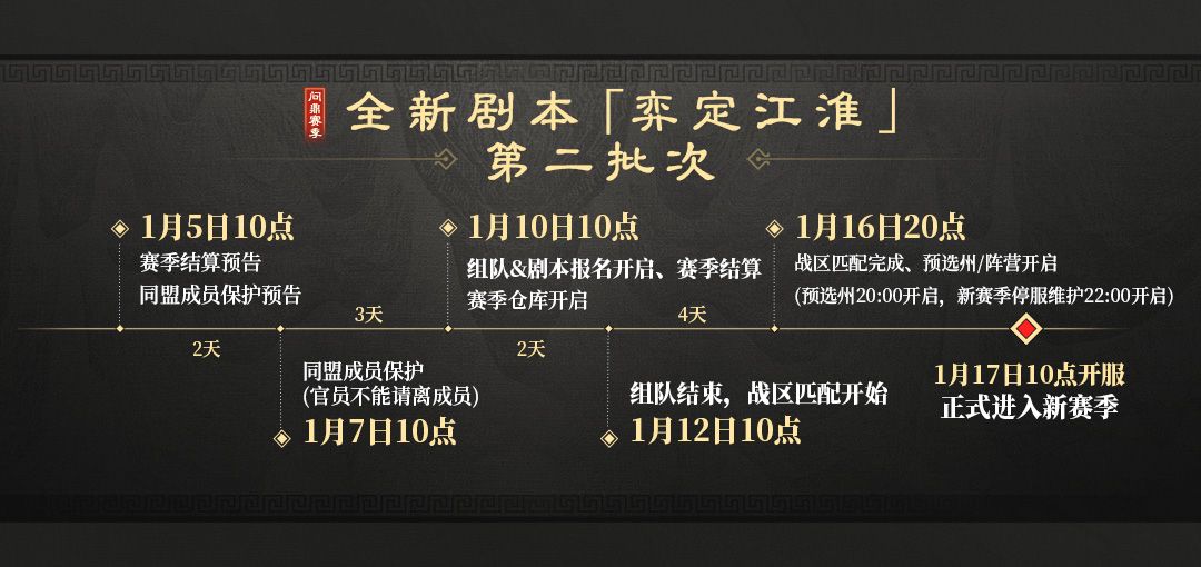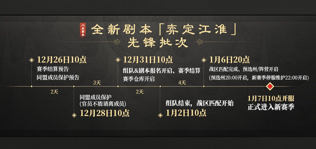 问鼎赛季全新剧本「弈定江淮」先锋&第一、二批次服务器结算预告