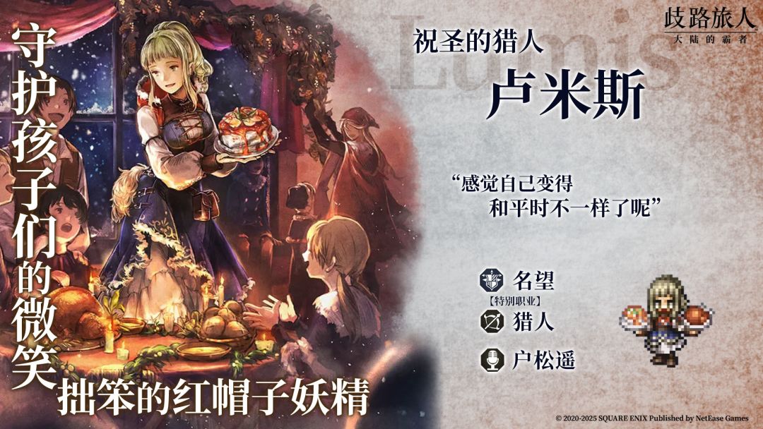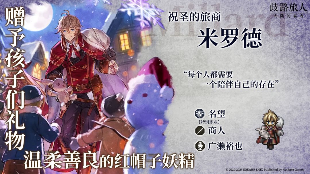 4、新增限时引导:“祝圣的旅人们”6★商人“米罗德”、6★猎人“卢米斯”,活动期间每次引导可得“祝圣的旅人的导片(2025/12)”