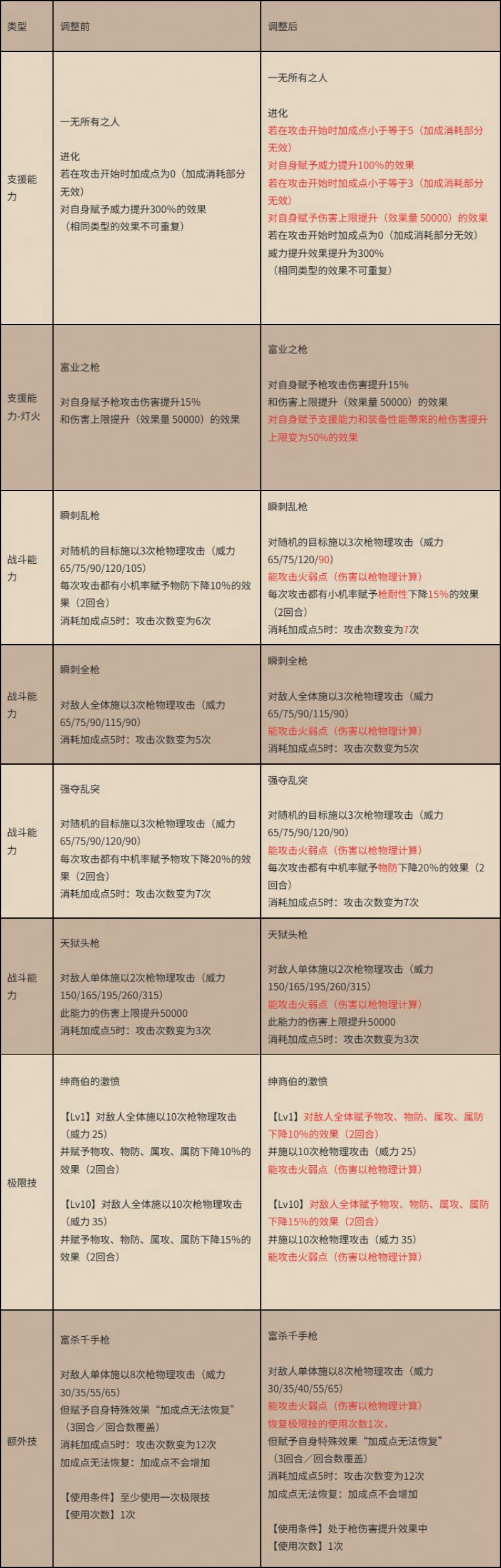 对本期追忆的霸者“奥斯卡”进行了性能调整,详情如下: