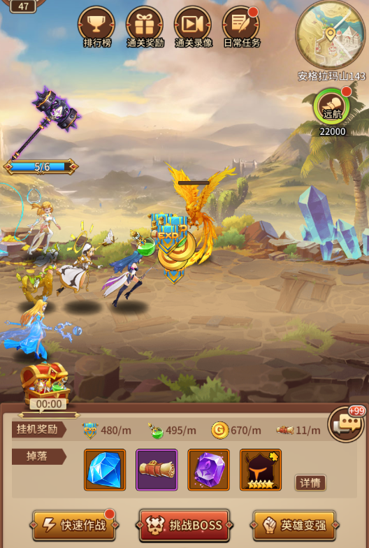 第三名《剑与远征》采用放置收菜的玩法核心,顺应了当下玩家追求轻松游戏的需求。其英雄进阶资源主要依靠离线收益和关卡推进获取,玩家即使不在线,游戏也在为他们积累资源,真正做到了轻松养成。