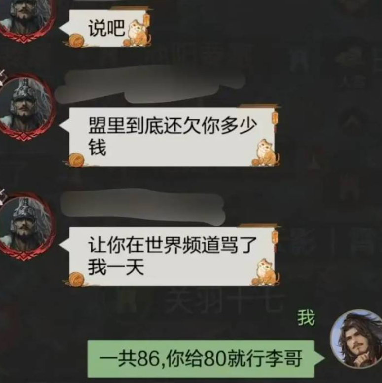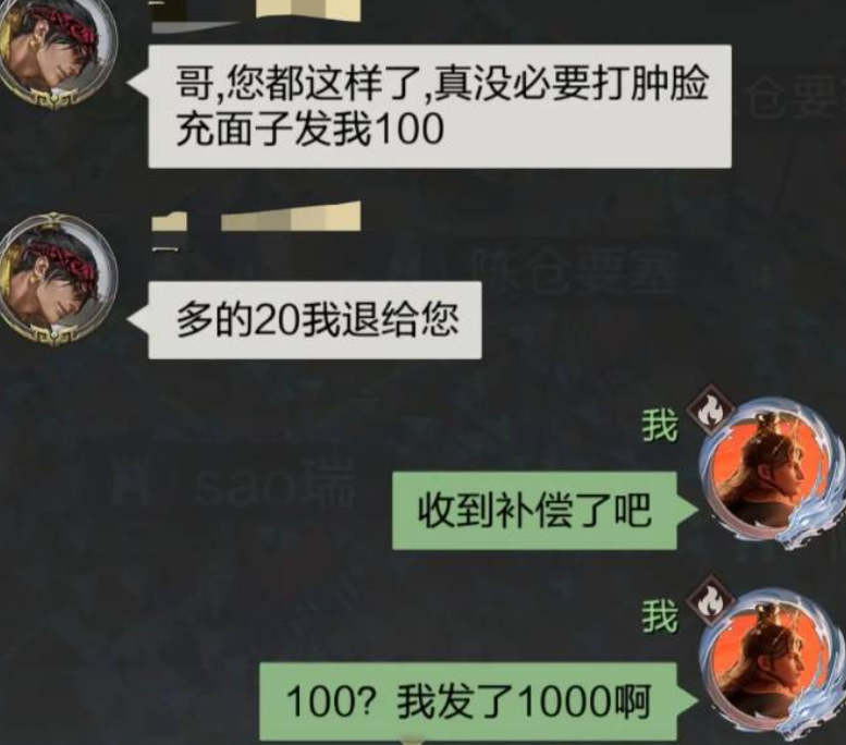 据悉,该金主为游戏战事投入10万军费,不料盟主先截留97500 元,仅给副盟主2000元下发至各团,一个团仅分到100元。经手团长扣下20元后,给到实际干活的铺路民工手里只剩80元,民工满心委屈,误以为是金主克扣,拿着80元接连吐槽金主好几天。金主得知此事后彻底懵了,才发现军费遭层层盘剥,当即发1000元红包让盟主转交民工补偿。