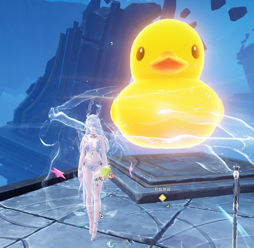 但是技能一放,感觉就挺不对劲。角色形象是玄幻的龙女,泳装是星空蓝比基尼,装饰是金属色饰品和水纹,结果E技能是一个小黄鸭,Q技能是红色或黄色泳圈,颜色不匹配、样式不匹配,感觉技能不如改成水色漓龙形象,点缀蓝色光点,E技能召唤一条在龙范围内飞舞,Q技能召唤龙环绕身体保护