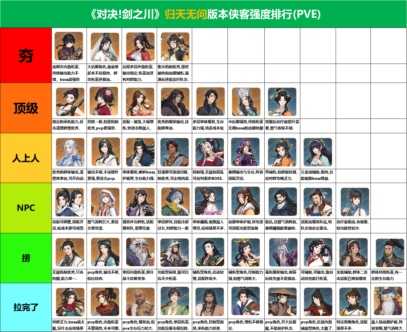 12月-1月份侠客强度从夯到拉排行来了!