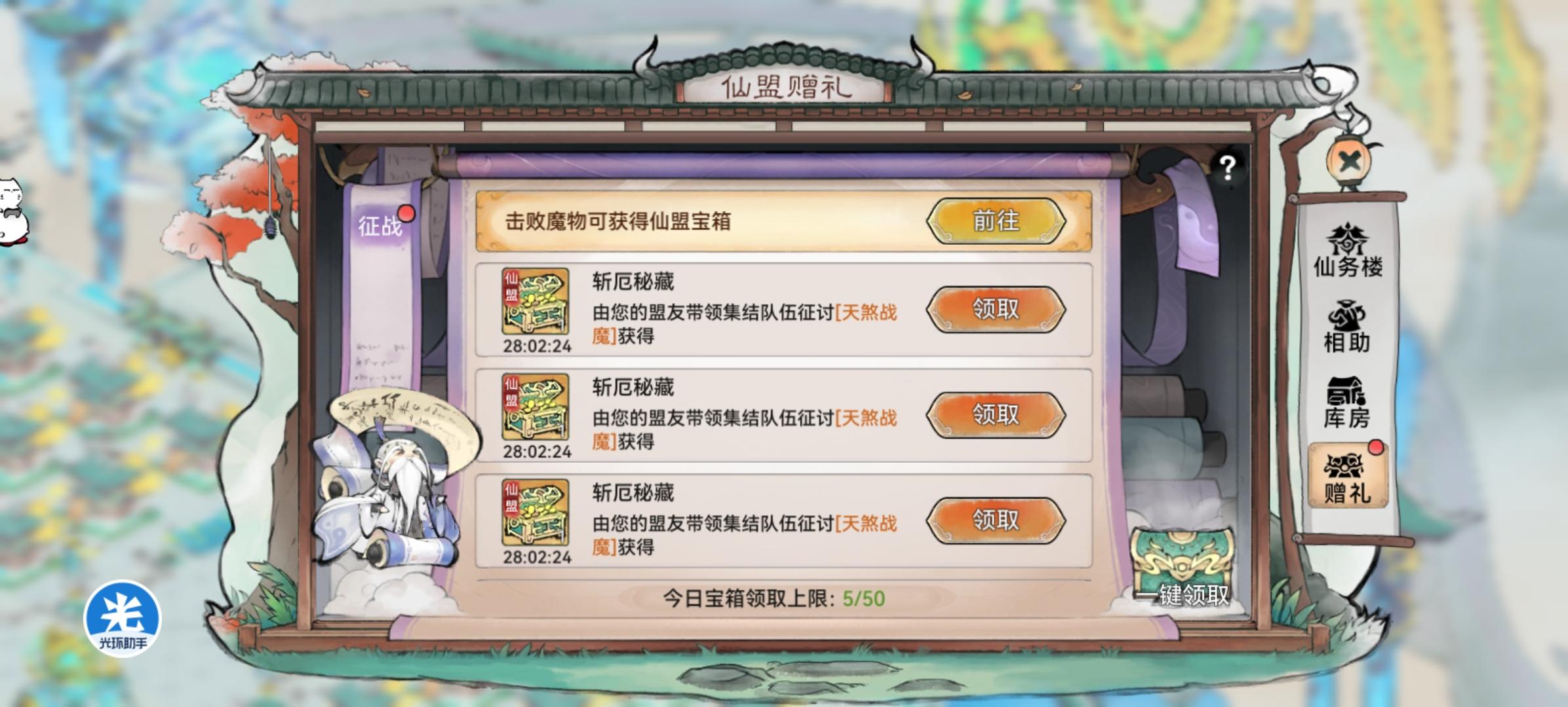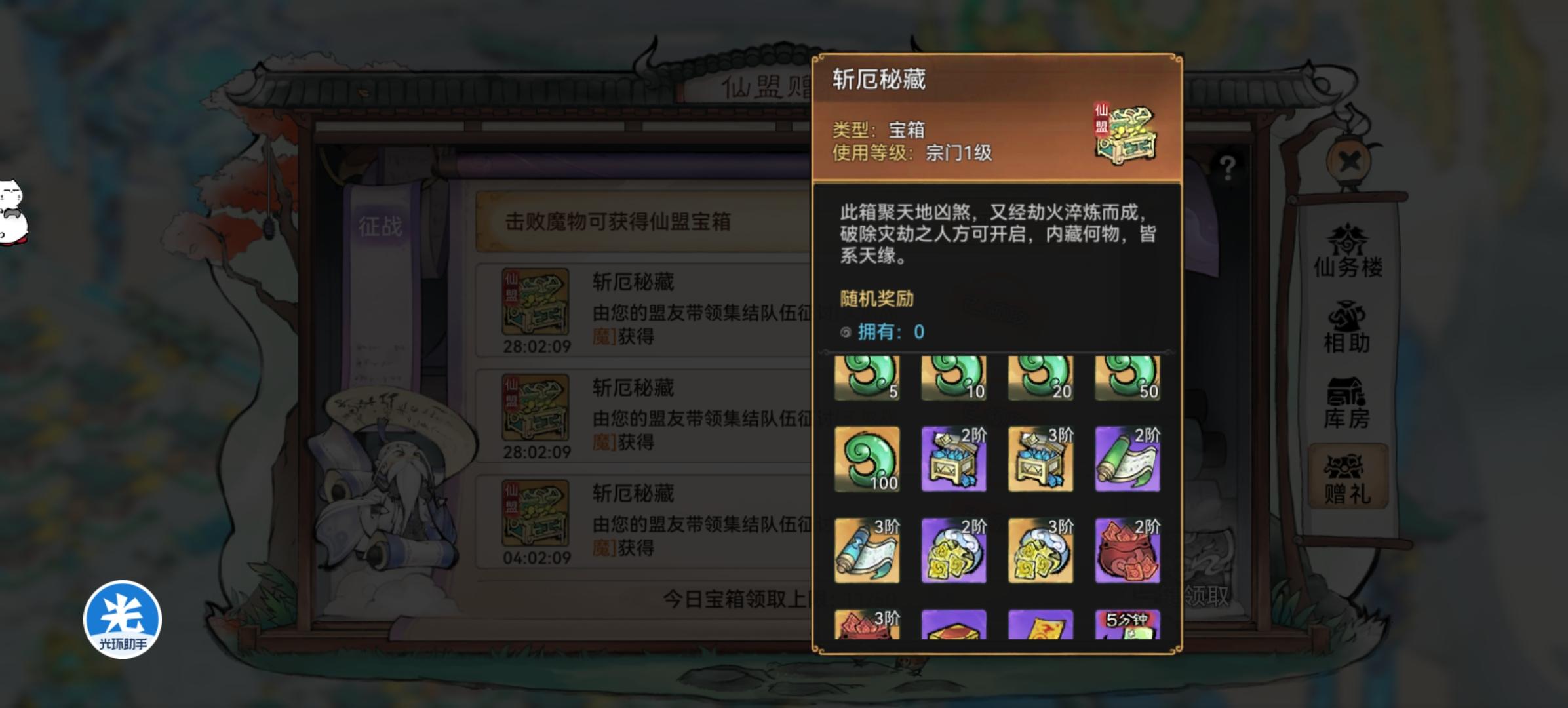最后一击获得的宝箱在仙魔界面的仙魔赠礼那里