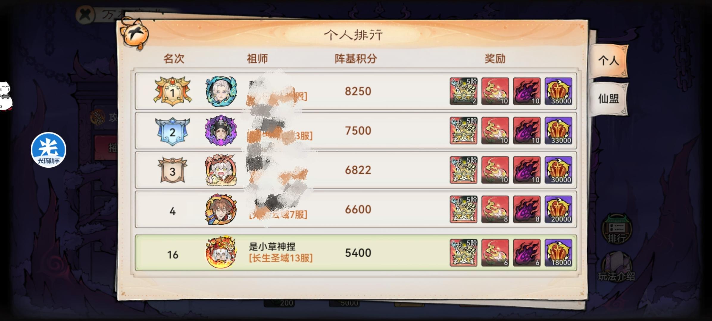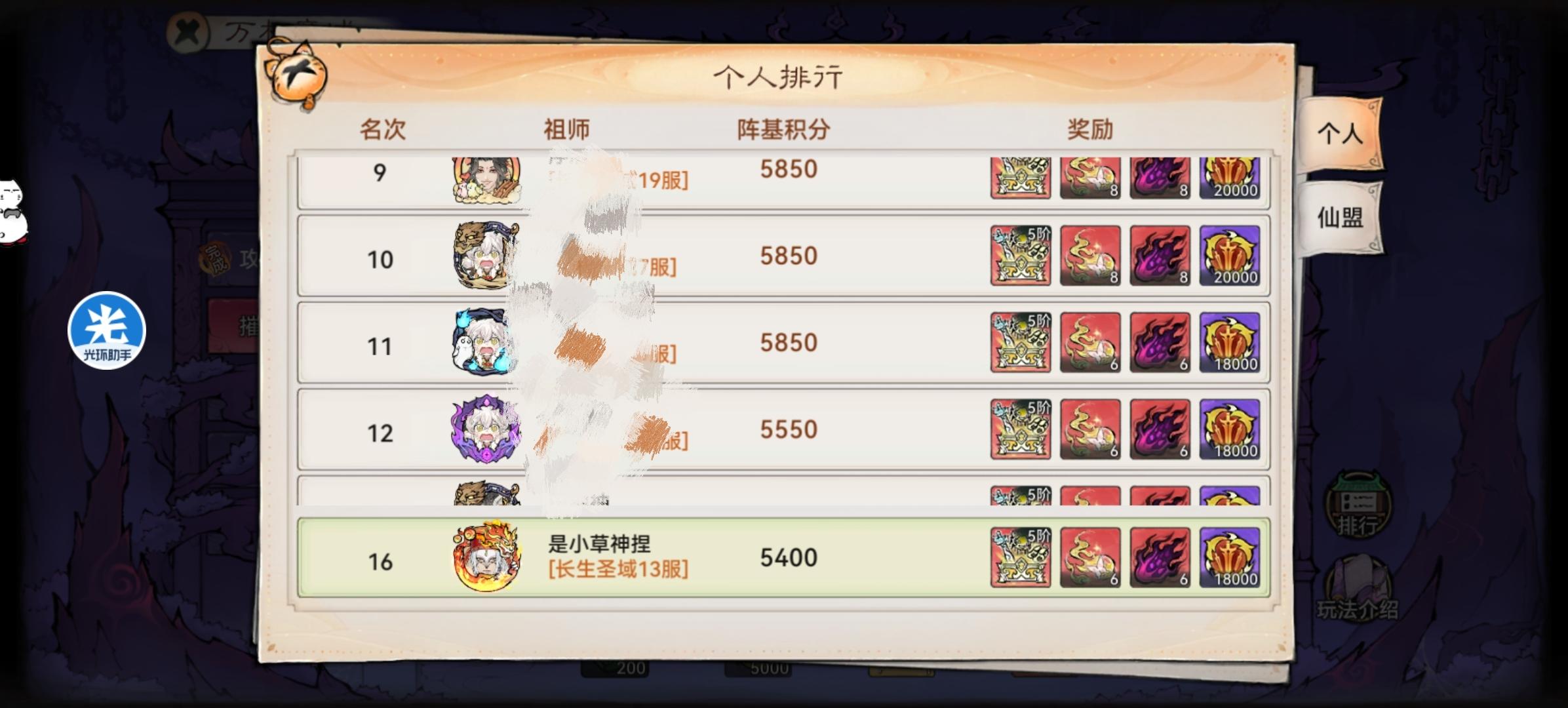 排行第一有两个仙魔自选箱,2~20的只有一个仙魔自选箱,前三的仙魔火各10个,4~10各8个,11~20各6个