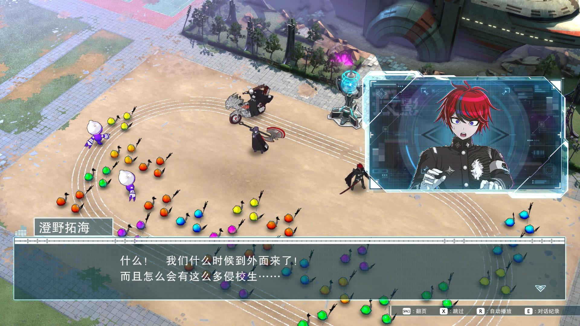 喜欢看剧情的玩家有福了,本作的剧情非常长,光是开头剧情就半小时以上,简直不要太爽。游戏故事发生在校园,这基本就是Too Kyo 的拿手好戏了。主角“澄野拓海”只是一个普通的学生,跟美丽的青梅竹马“嘉琉亚”过着平淡的日子,无忧无虑。但是,突如其来的怪物袭击,打破了这一切……15名被突然召集的学生,突然得到的特殊能力,这一切的感觉都像是在《弹丸论破》一样。甚至,连队友都吐槽,是不是下一步就要自相残杀?让人笑喷。