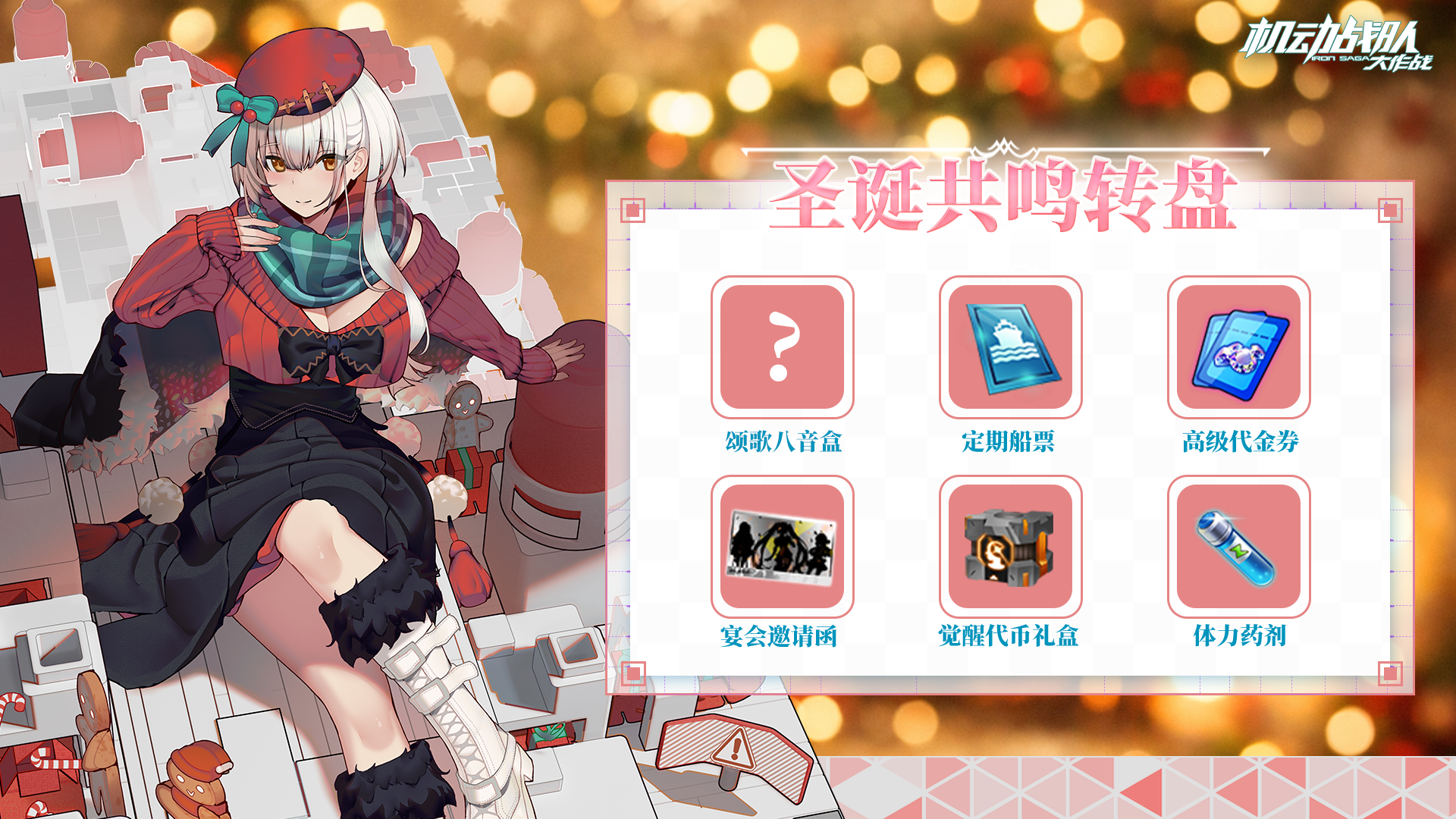 活动期间,指挥官可登录游戏领取看板娘福利。奖励内容:圣诞树*1、高级代金券*2、圣诞礼盒*5、宴会邀请函*5、体力药剂*10。