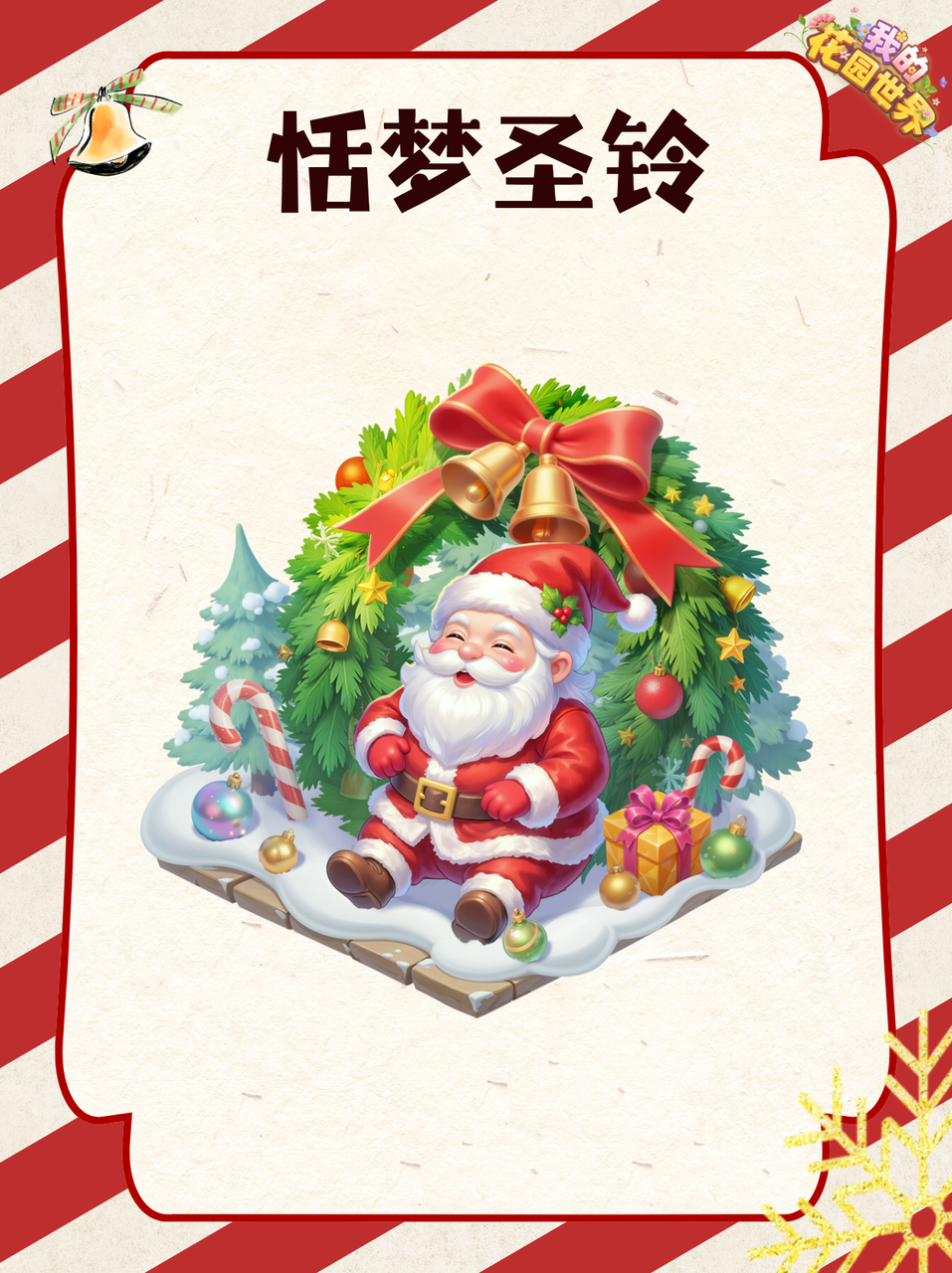 🔔【恬梦圣铃】叮铃铃!铃铛一响,圣诞老人就带着礼物来啦!他裹着圣诞袍,戴着圣诞帽,白花花的胡须软蓬蓬的,大红蝴蝶结衬得身后的松枝花环更鲜亮~