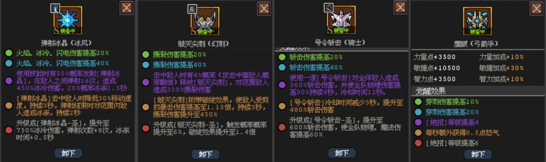 攻速光环、准确光环、破甲光环、回怒0.15(破法光环)
